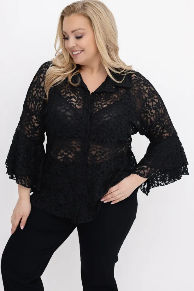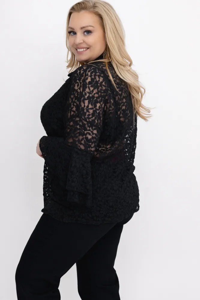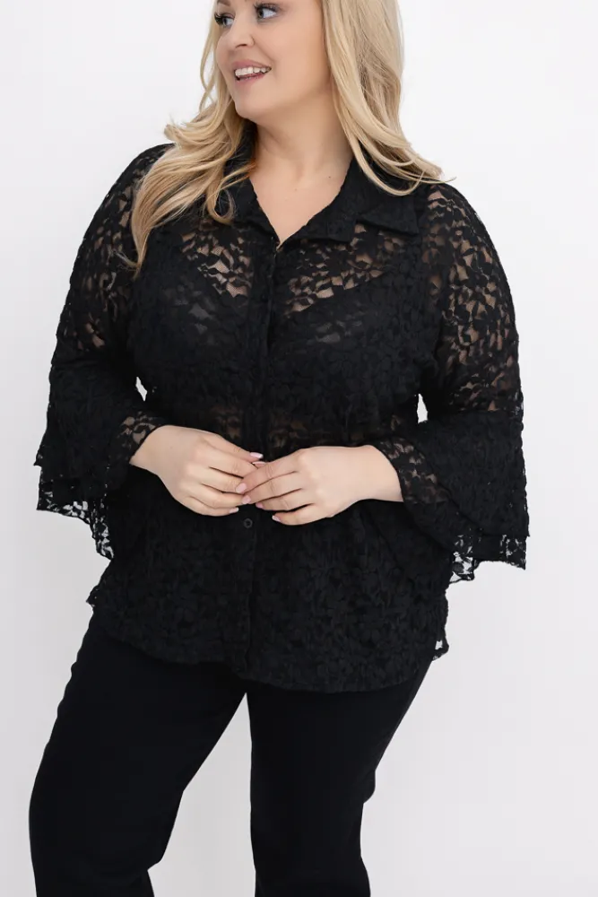 Damskie Włoski Czarna Koszula koronkowa LEVANTE