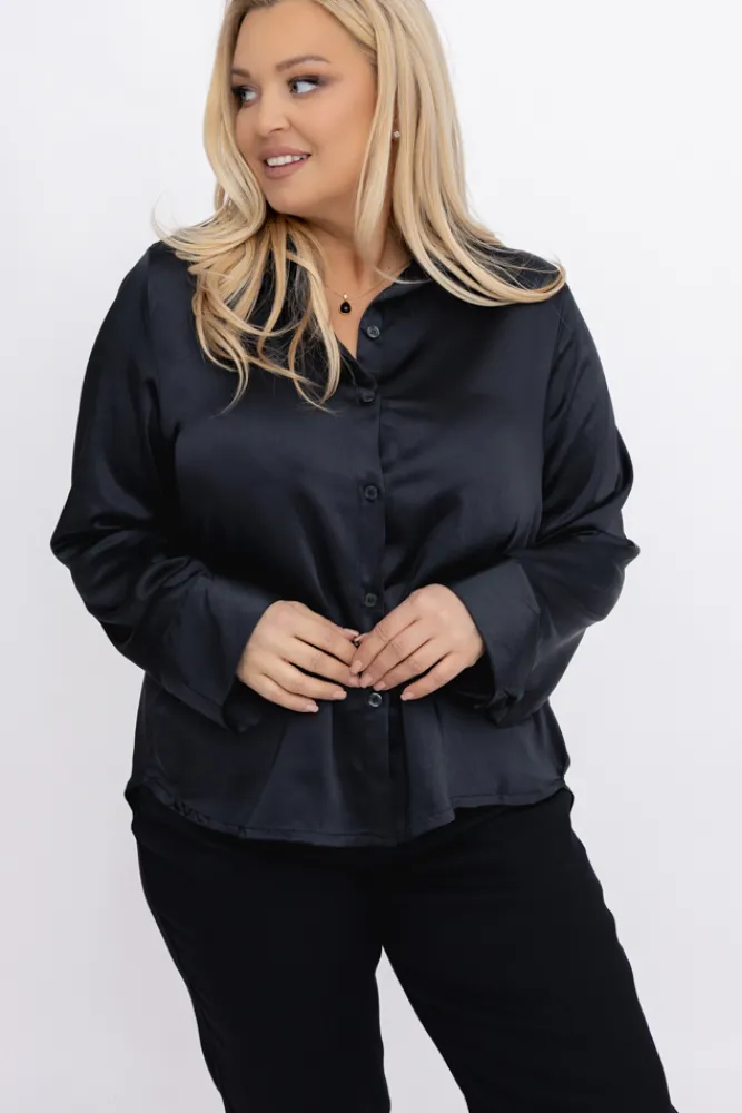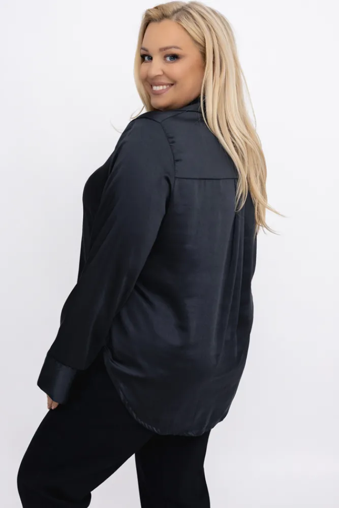 Damskie Włoski Czarna Koszula satynowa TROGEDO