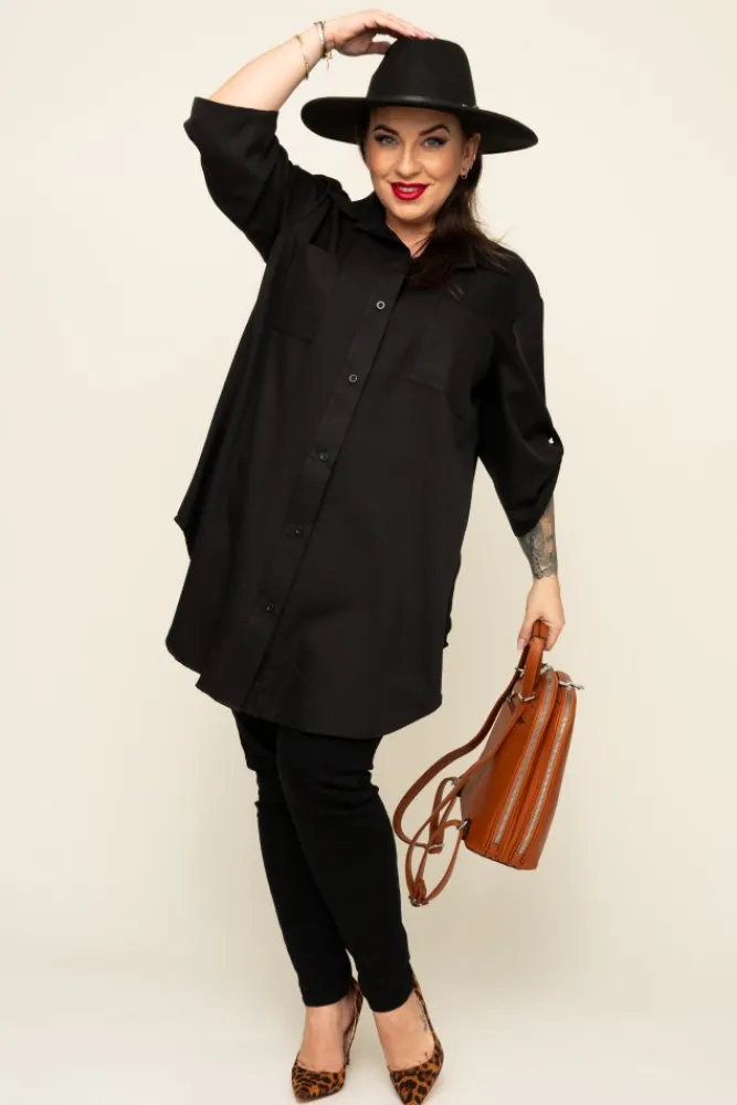 Damskie Włoski Czarna Koszula SIRIN