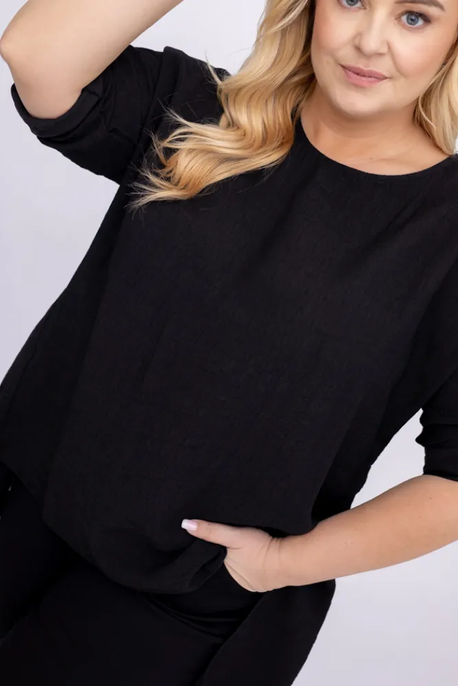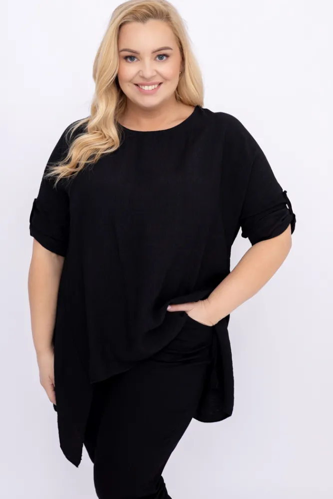 SKU: SKUN241Nexc0r Kategorie: Bluzki Damskie, Odzież Damska, Tuniki Damskie Tagi: Czarny, Damskie, Włoski Marka: Włoski