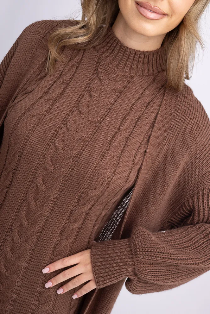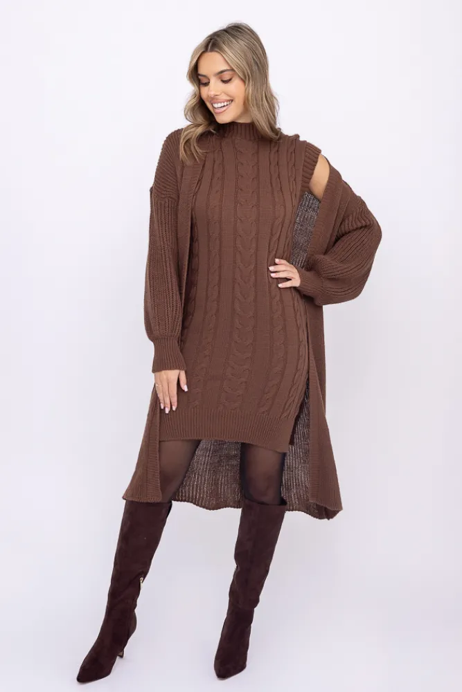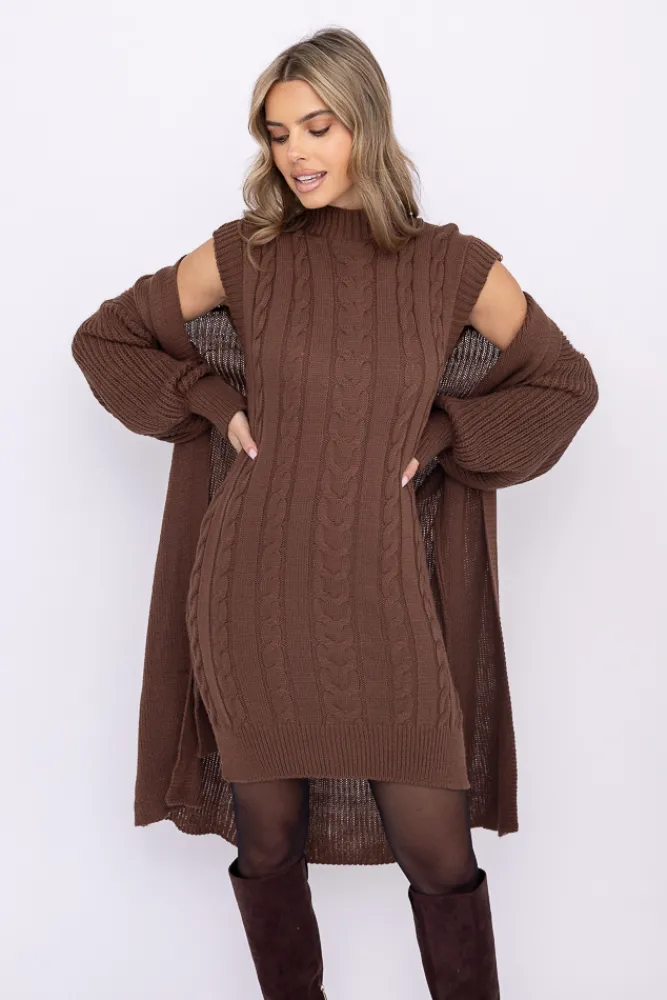 Damskie Włoski Czekoladowy Komplet sweterkowy ROSA