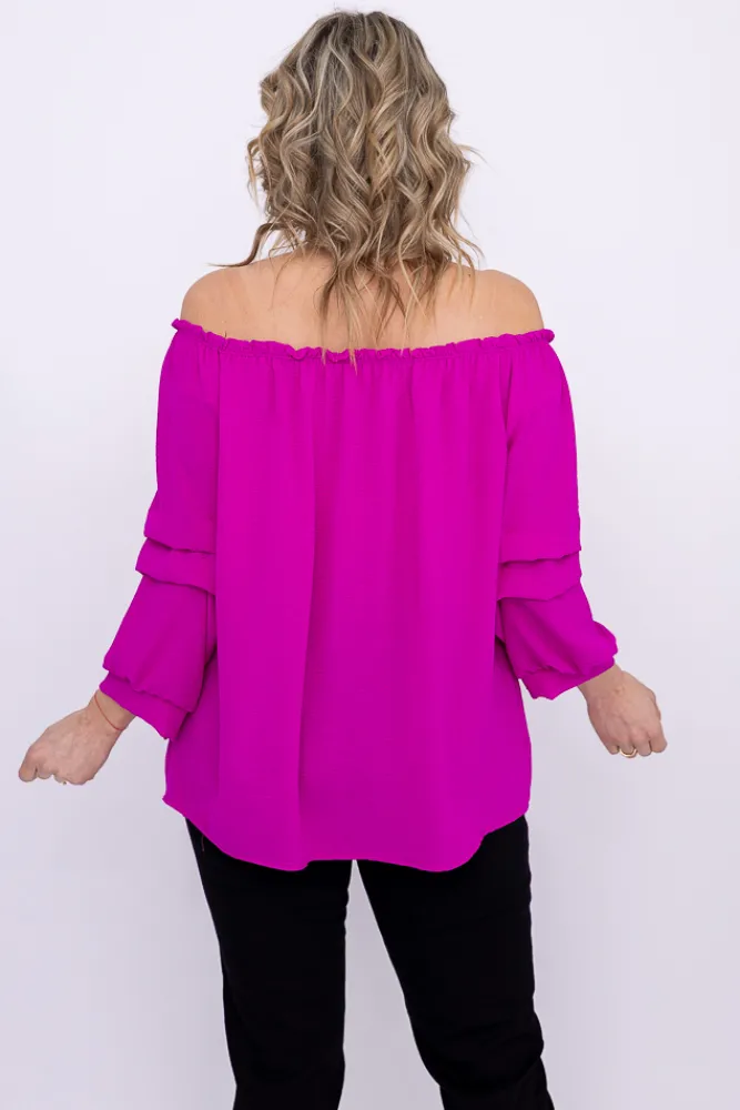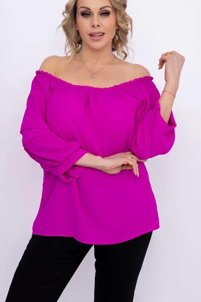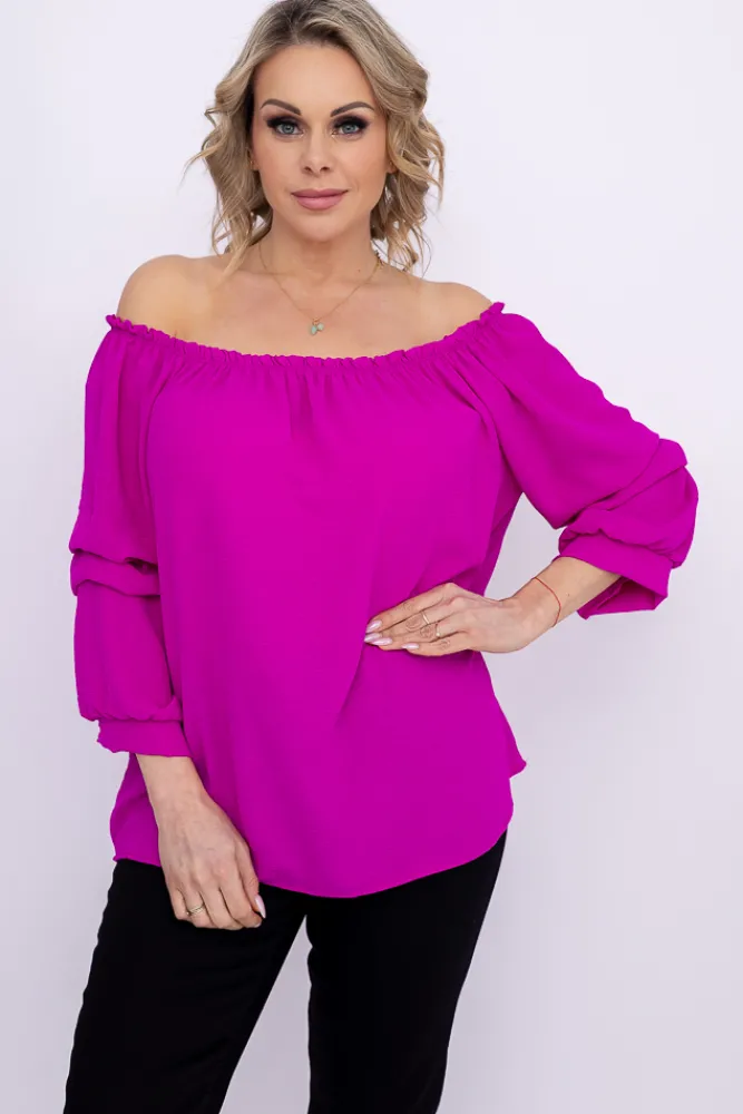Damskie Włoski Fioletowa Bluzka z marszczonymi rękawami LURIGO