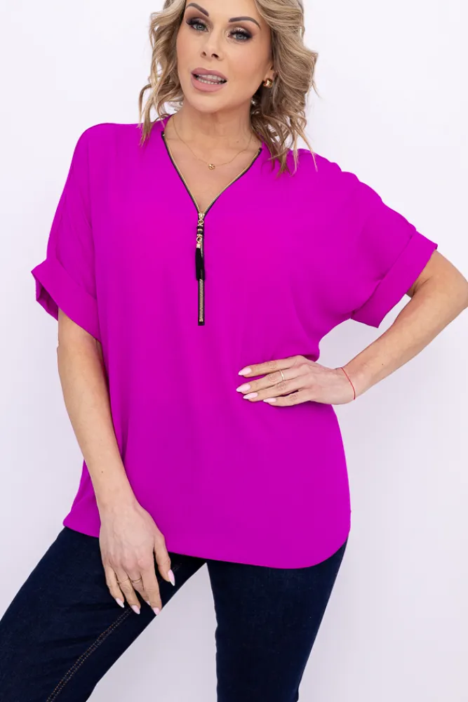 Damskie Włoski Fioletowa Bluzka z rozsuwanym dekoltem EKIUZI