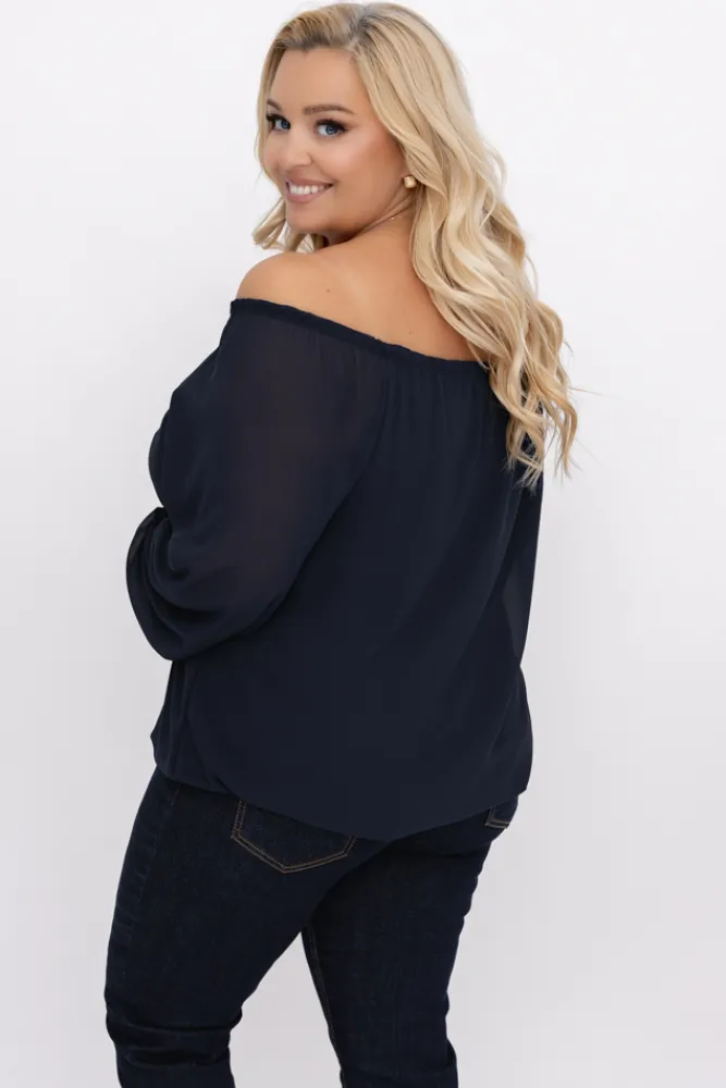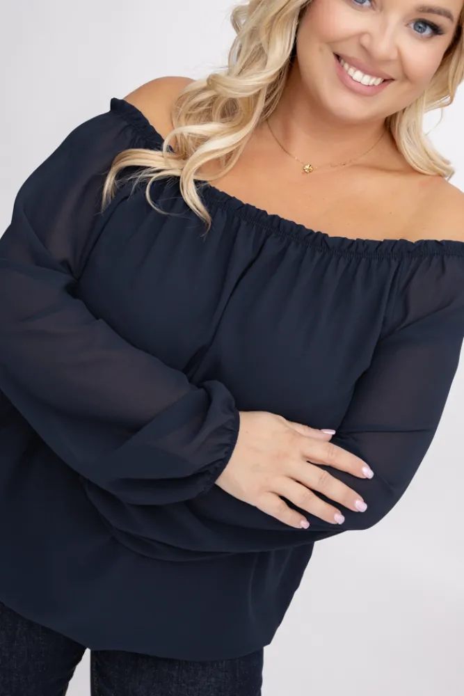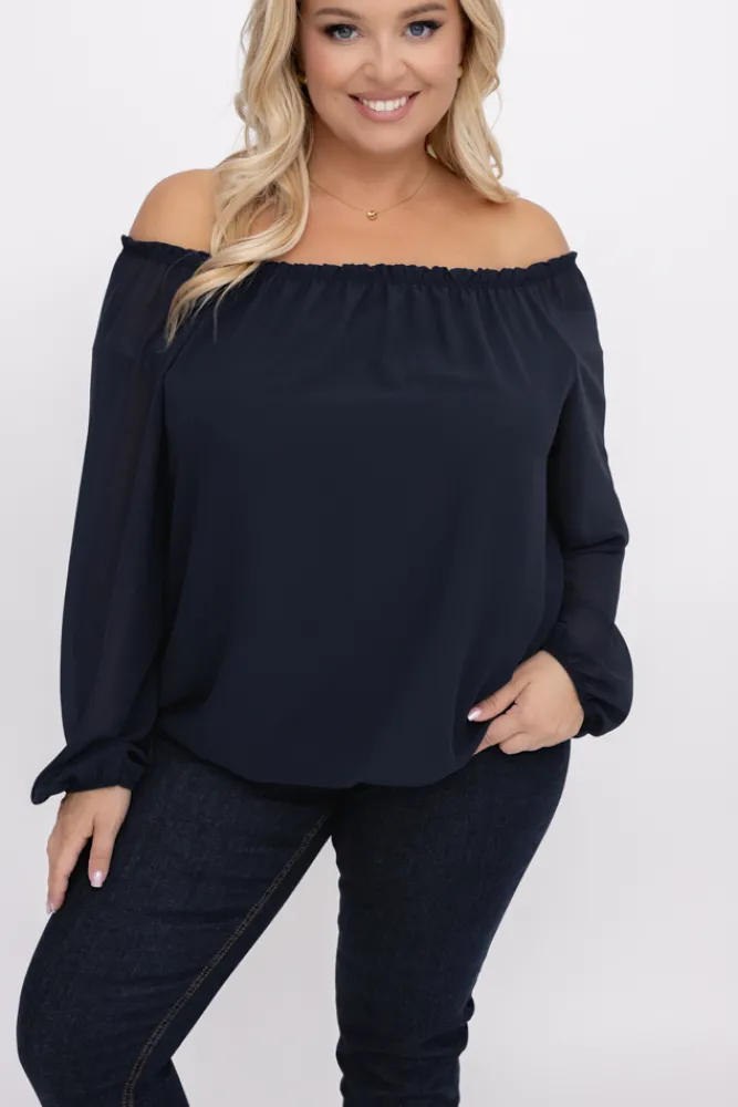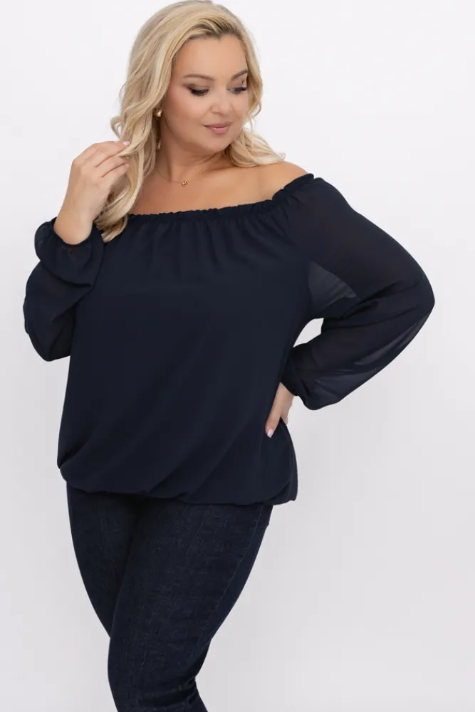 Damskie Włoski Granatowa Bluzka szyfonowa HILL