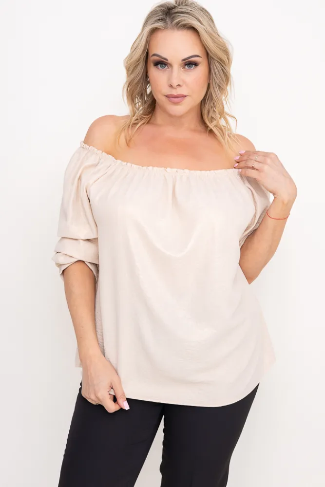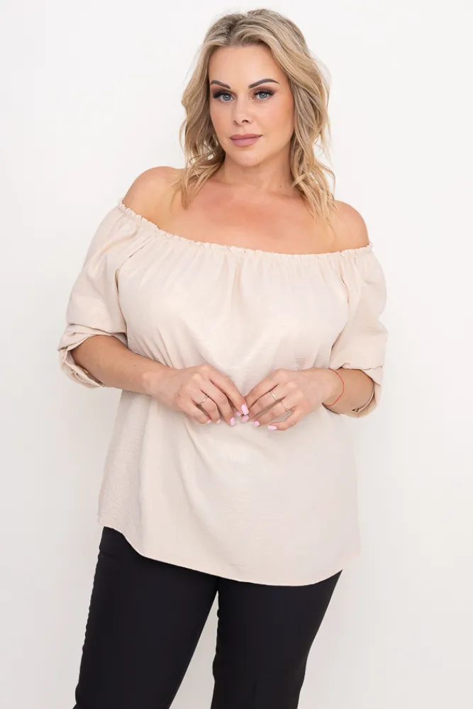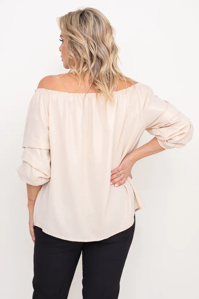 Damskie Włoski Jasnobeżowa błyszcząca Bluzka z marszczonymi rękawami VENSI