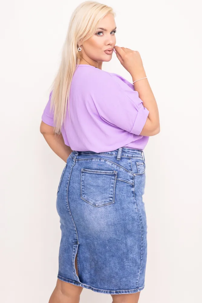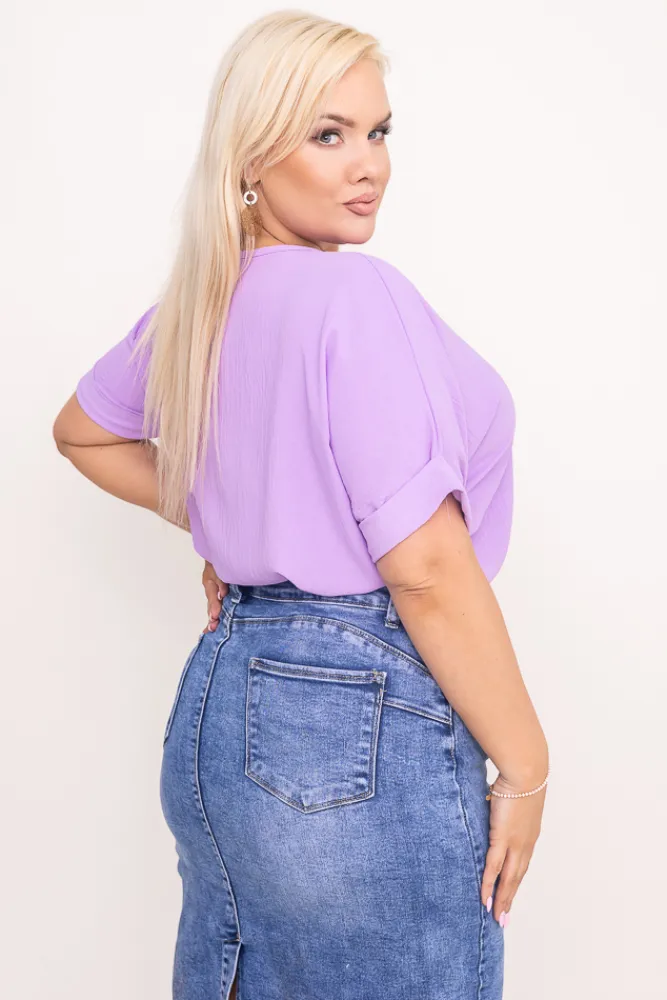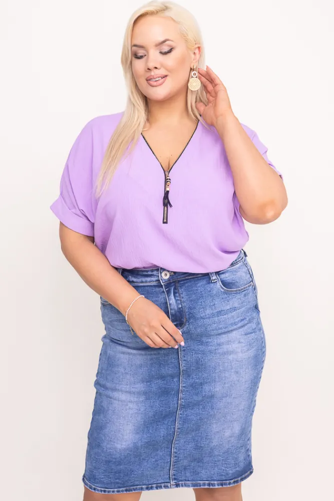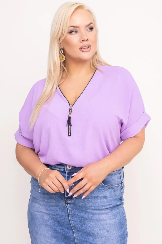 Damskie Włoski Liliowa Bluzka z rozsuwanym dekoltem EKIUZI