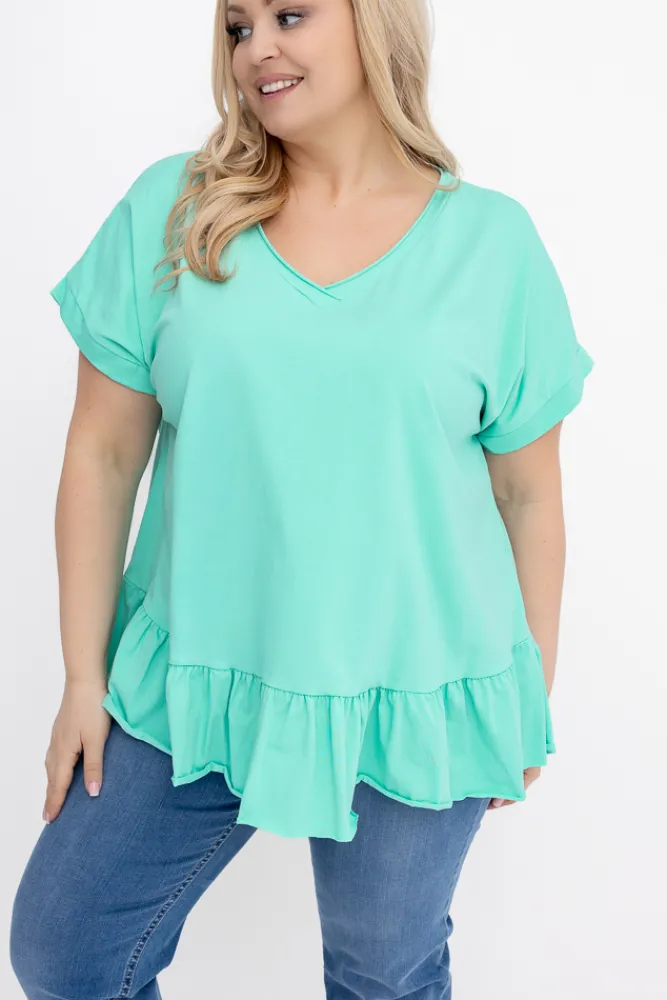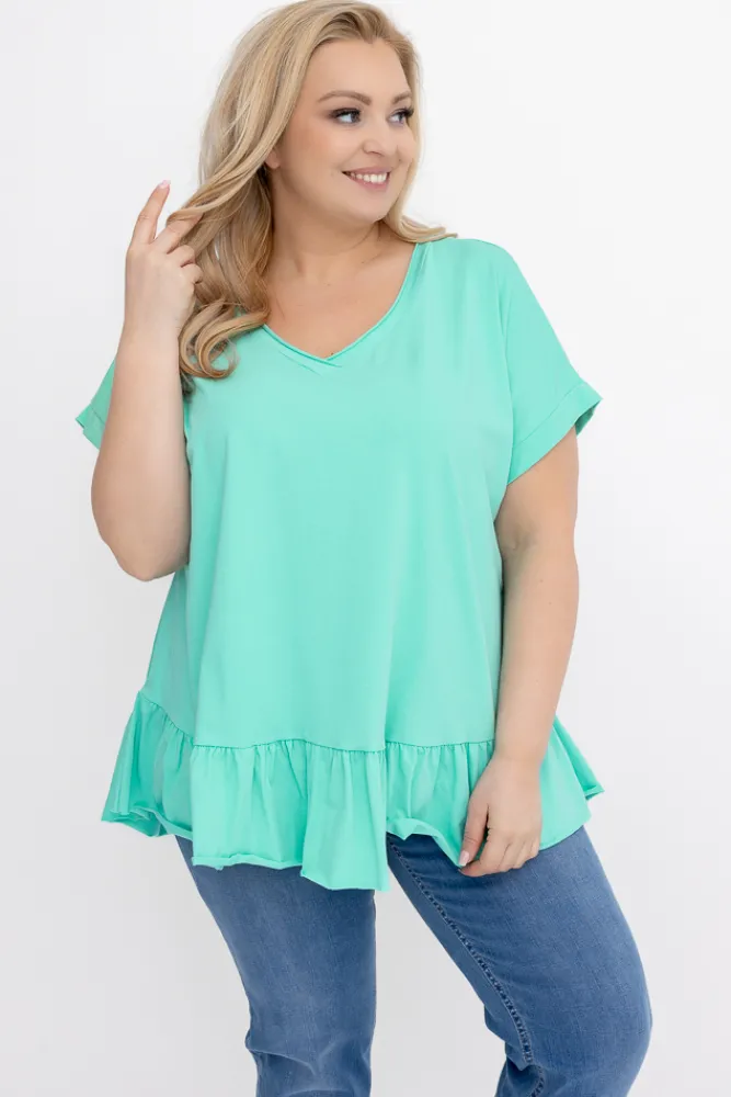 Damskie Włoski Miętowa Bluzka z falbaną BEYBIN