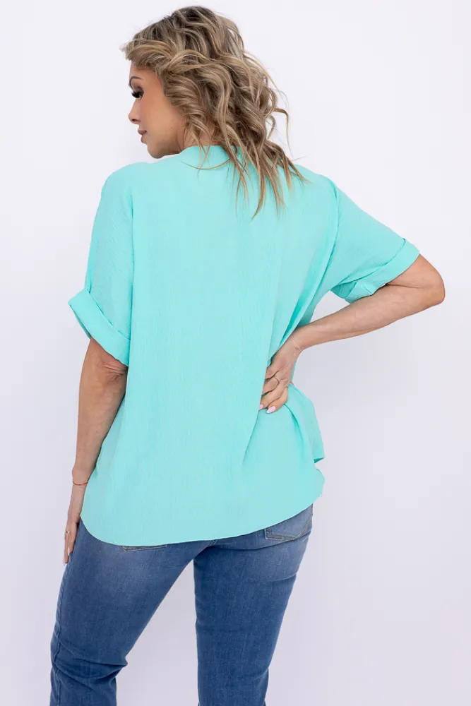 Damskie Włoski Miętowa Bluzka z rozsuwanym dekoltem EKIUZI