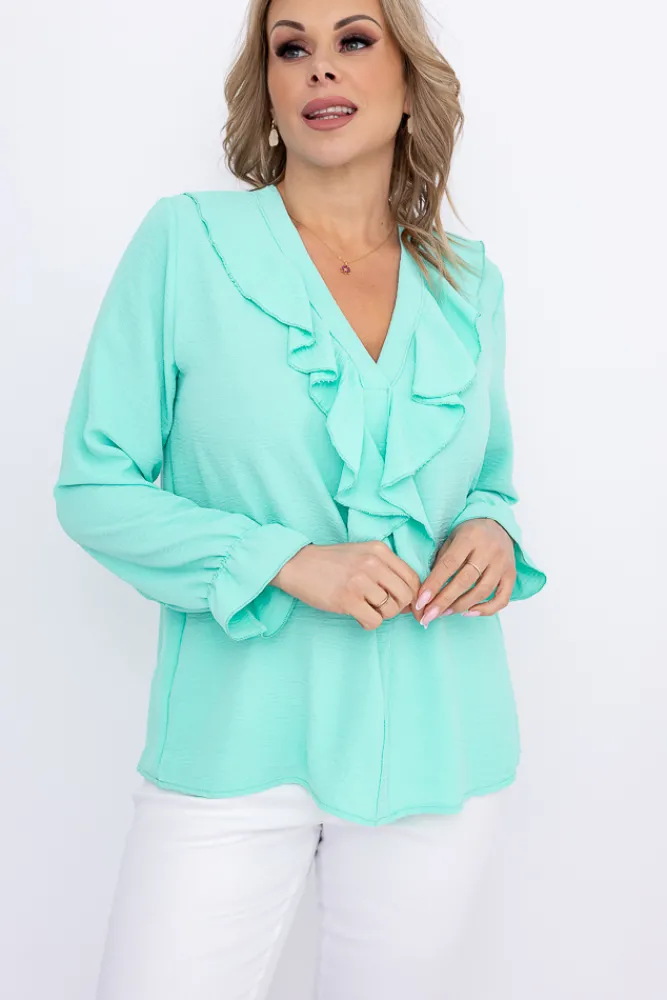 Damskie Włoski Miętowa Bluzka z żabotem GENESIS