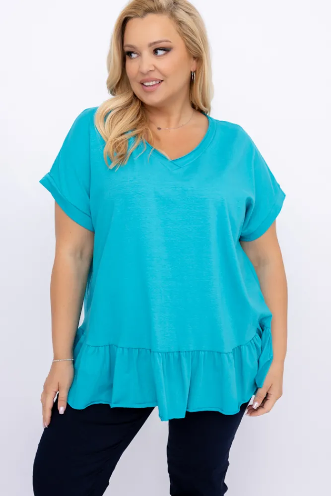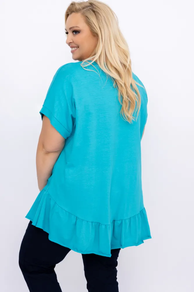 Damskie Włoski Niebieska Bluzka z falbaną BEYBIN