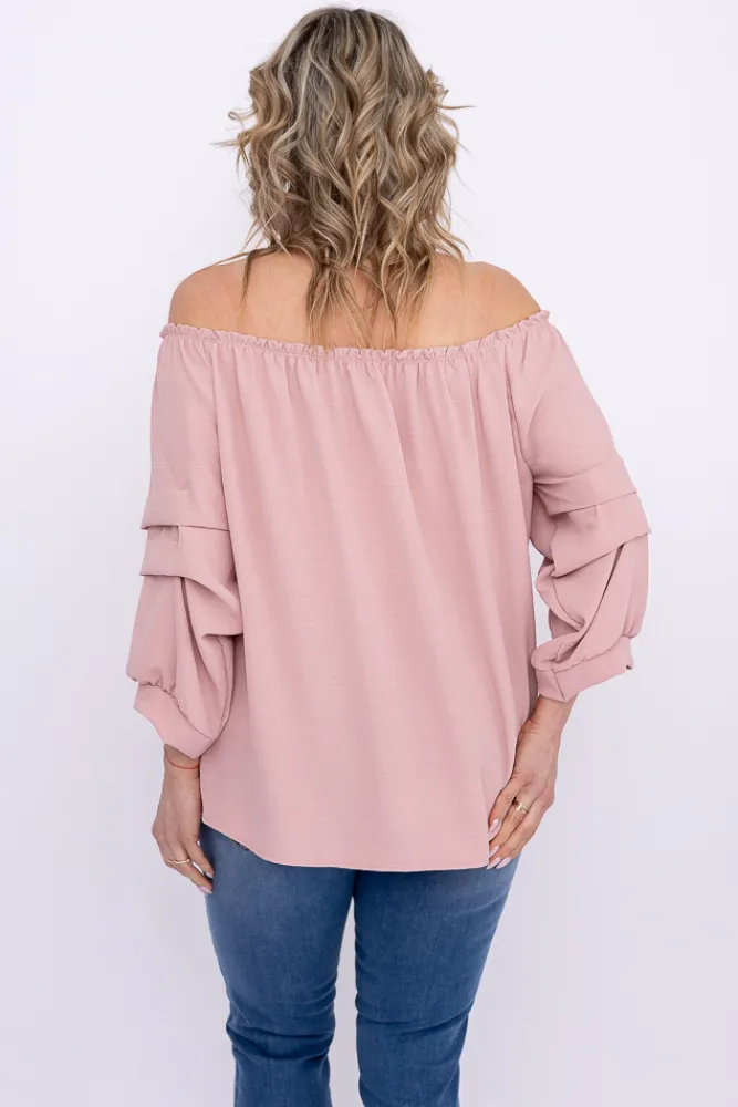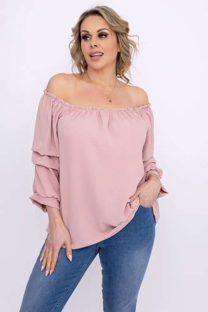 Damskie Włoski Pudroworóżowa Bluzka z marszczonymi rękawami LURIGO