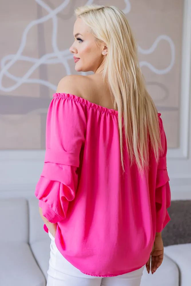 Damskie Włoski Różowa Bluzka z marszczonymi rękawami NANSI
