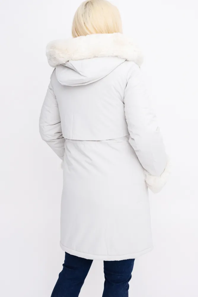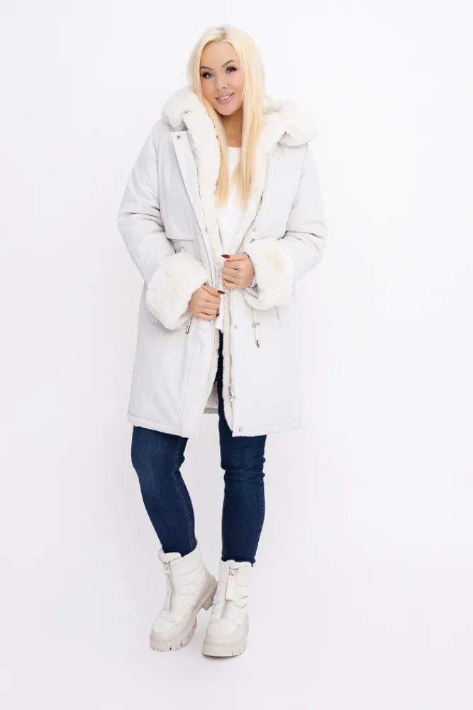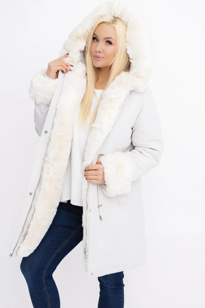 Damskie Włoski Śmietanowa Kurtka puchowa z kapturem SNOWY