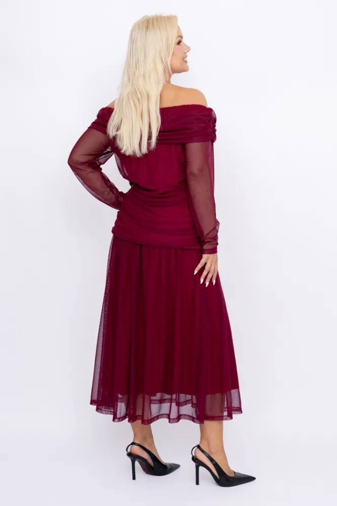 Damskie Włoski Wiśniowy Komplet siateczkowy PORTESIA