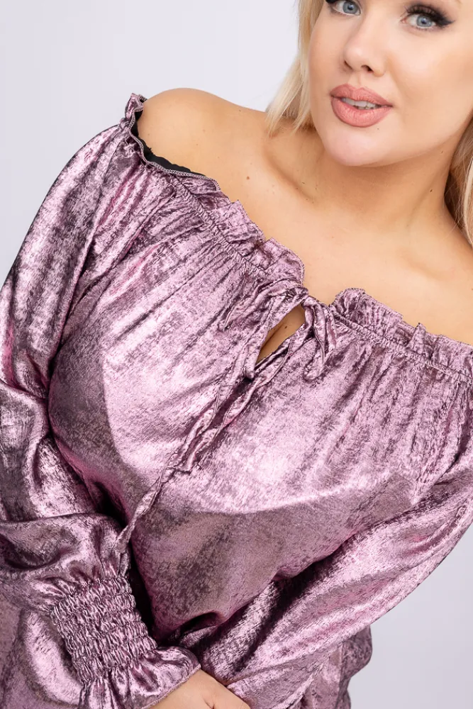 Damskie Włoski Wrzosowa błyszcząca Bluzka ZOI