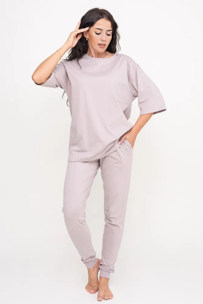 Polski Beżowa Piżama z długimi spodniami REVENTI