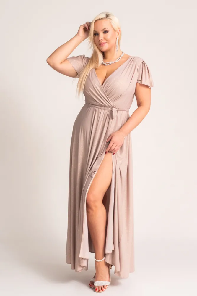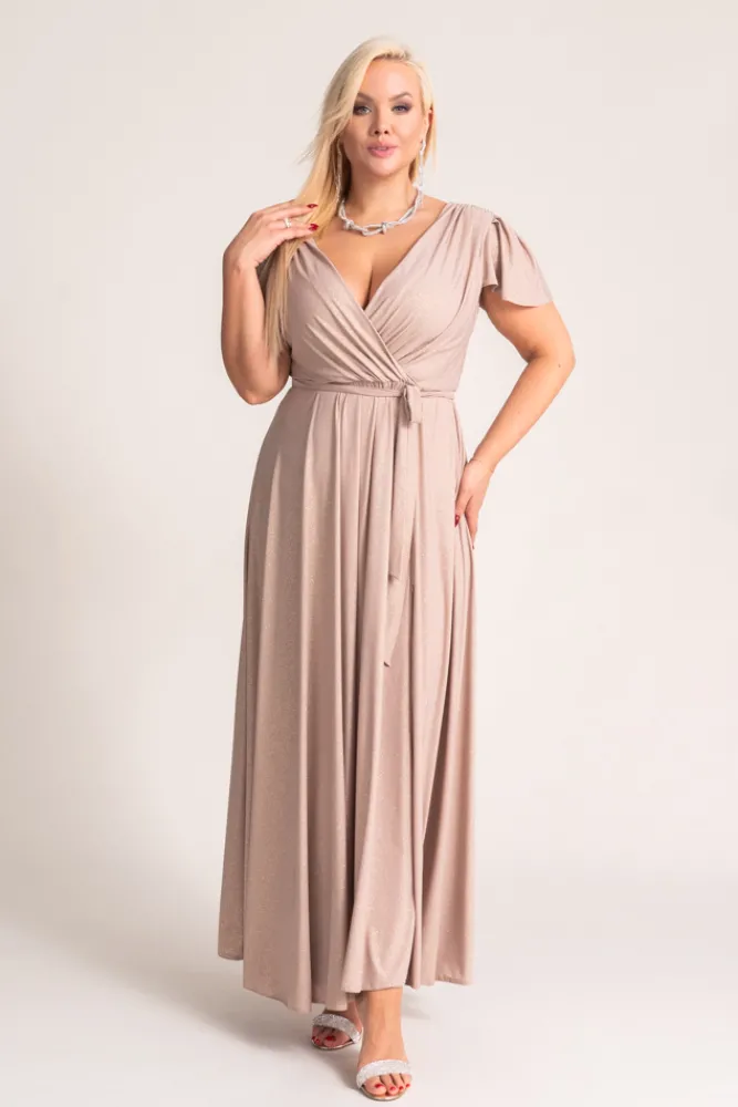 Polski Beżowa Sukienka brokatowa HESIO