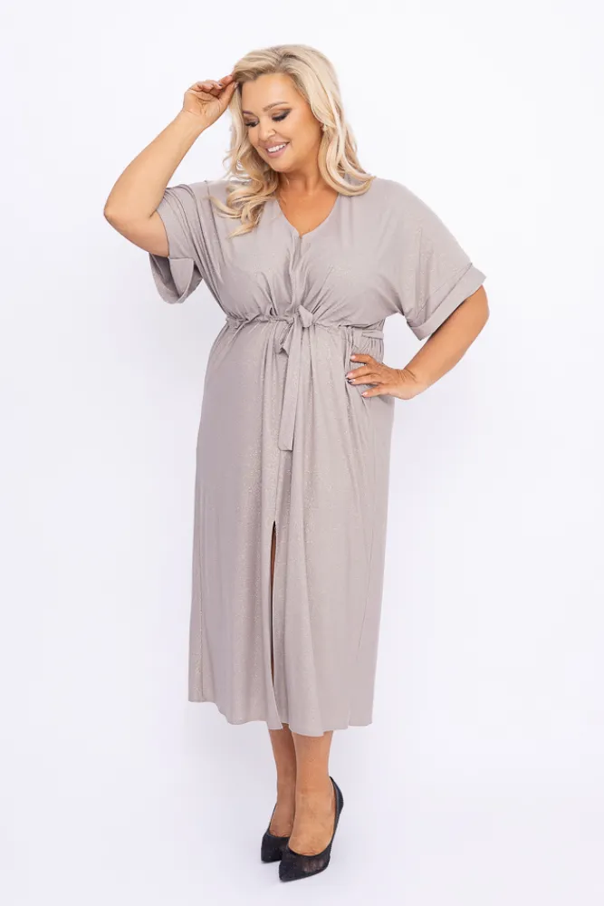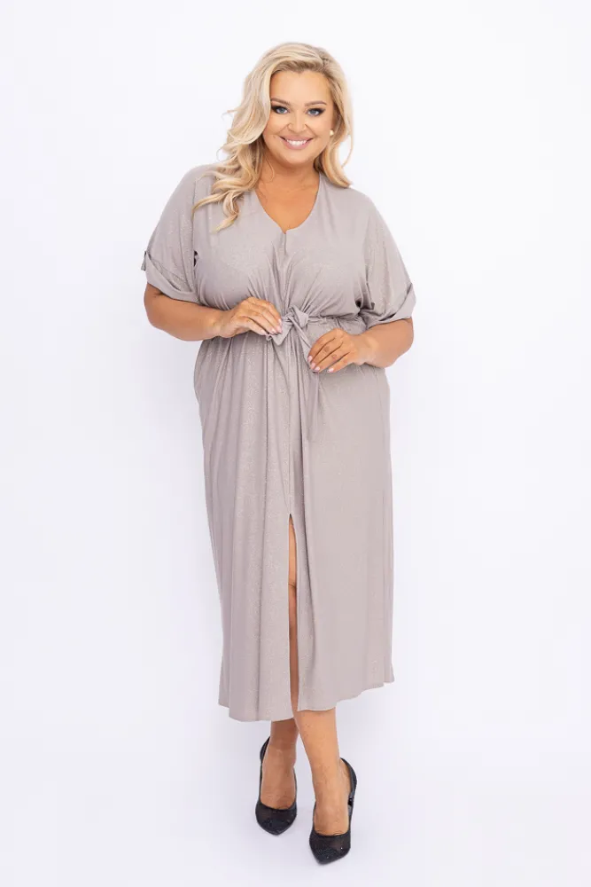 Polski Beżowa Sukienka brokatowa MONSORI