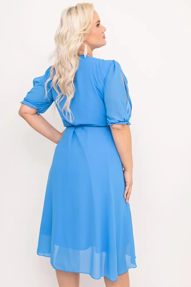 Polski Błękitna Sukienka szyfonowa PEGIO