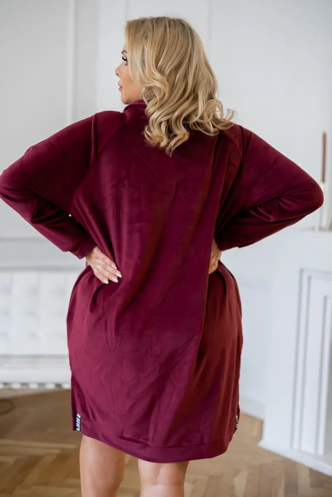 Polski Bordowa Sukienka welurowa PERIO
