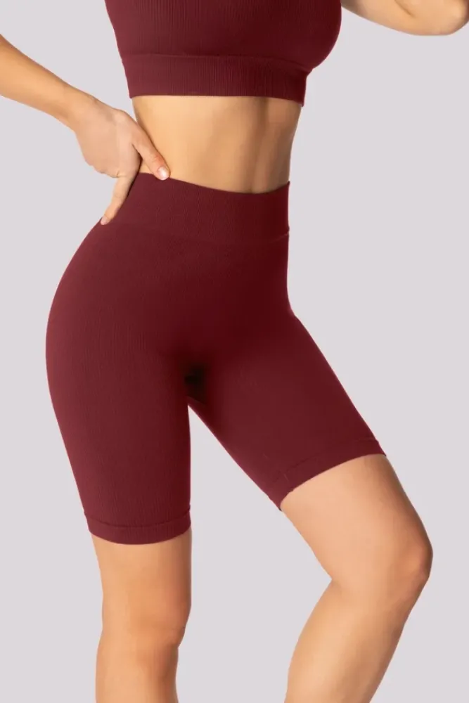 Polski Burgundowe Spodenki bikery prążkowane RIBBED