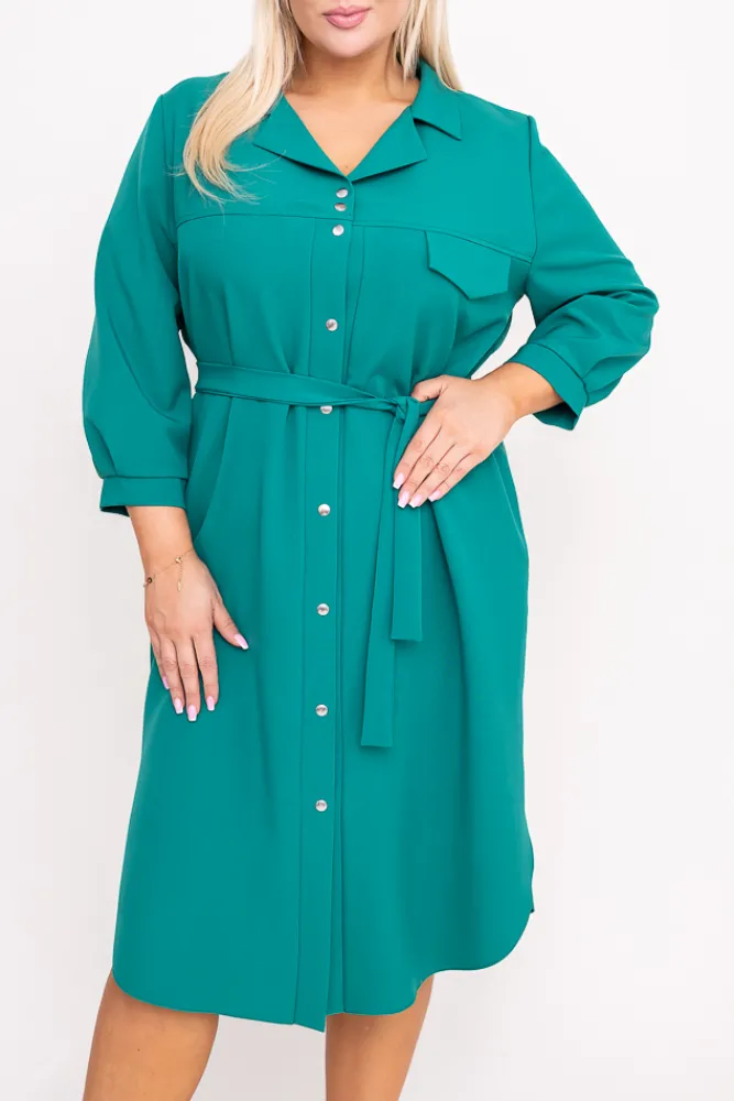 Polski Butelkowozielona Sukienka szmizjerka ASENSIA