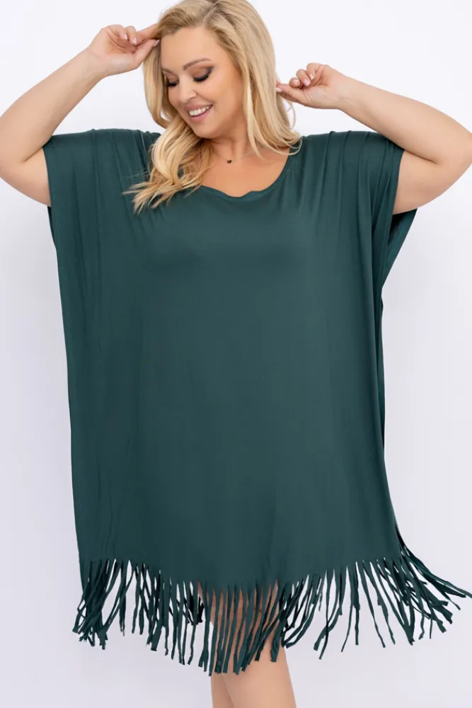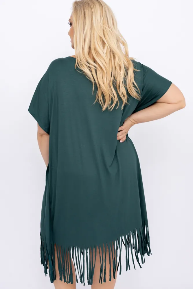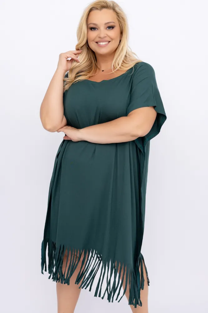 Polski Butelkowozielona Sukienka z frędzlami RIVINO