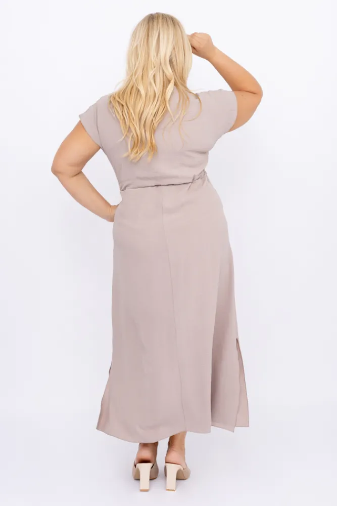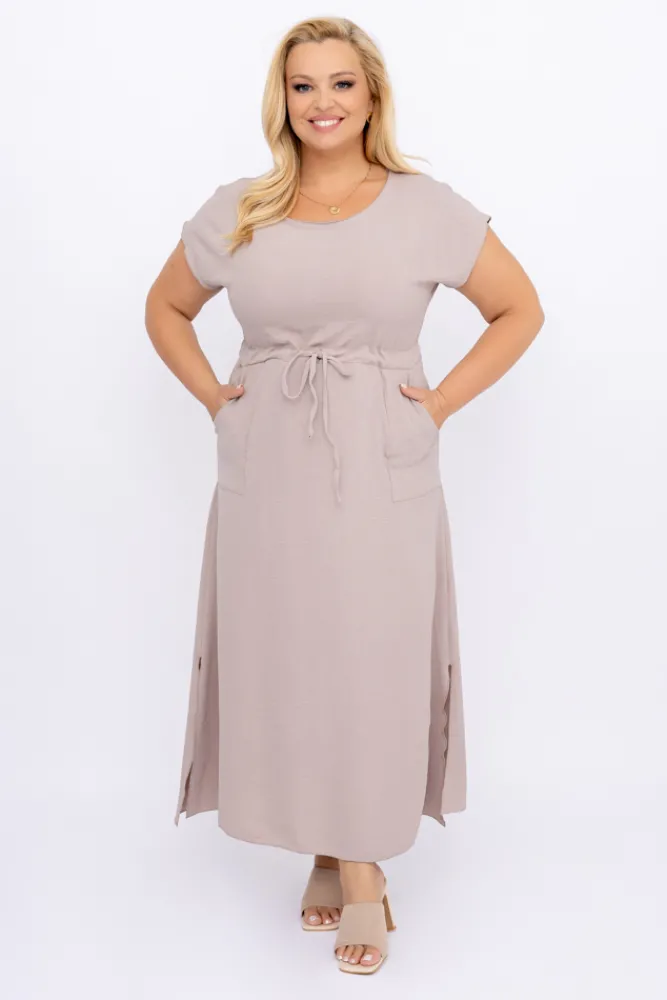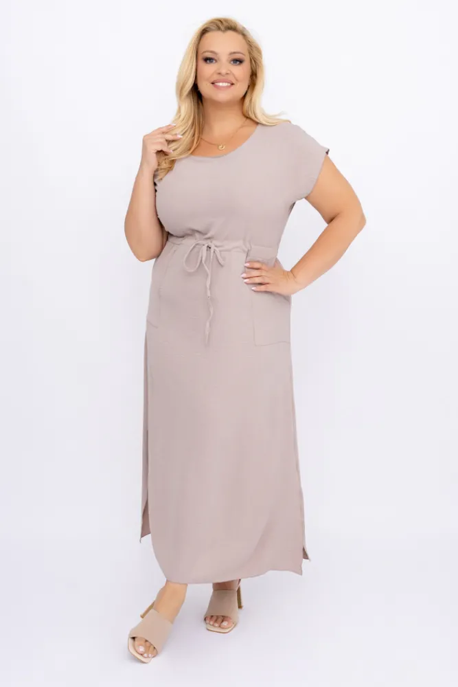 Polski Ciemnobeżowa Sukienka PIRMENO