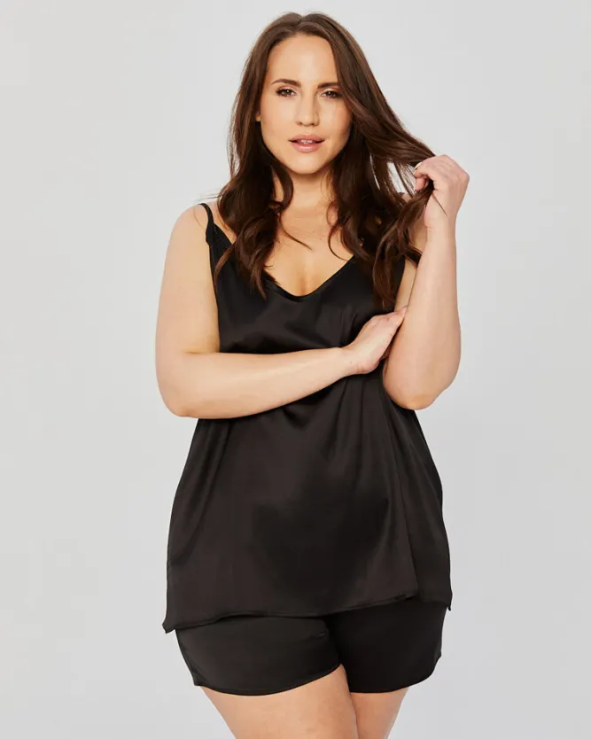 Polski Czarna Piżama satynowa z szortami PELOZI
