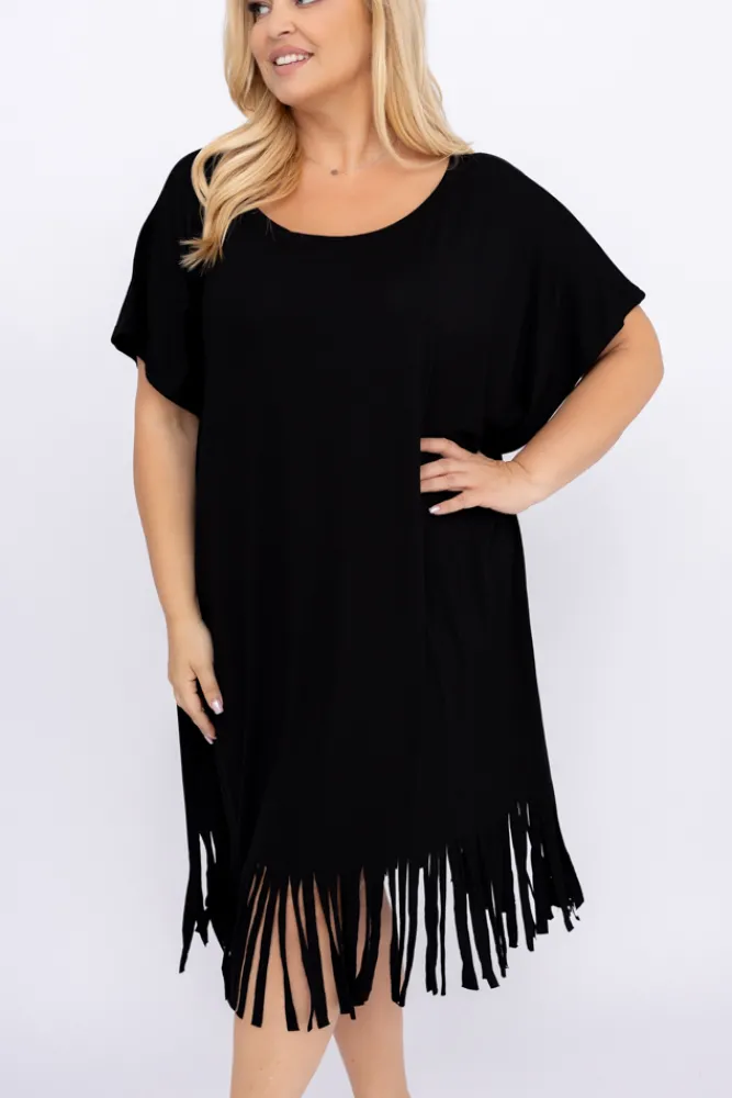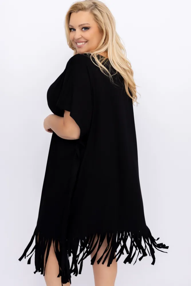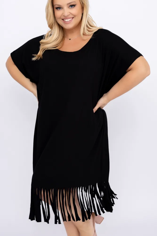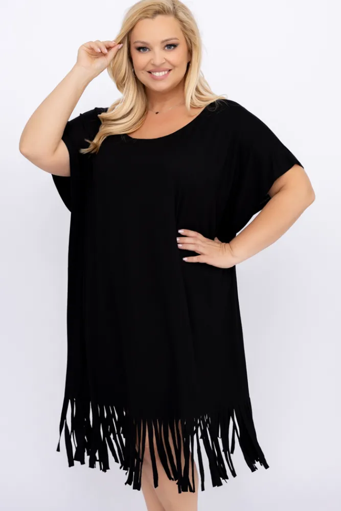 Polski Czarna Sukienka z frędzlami RIVINO