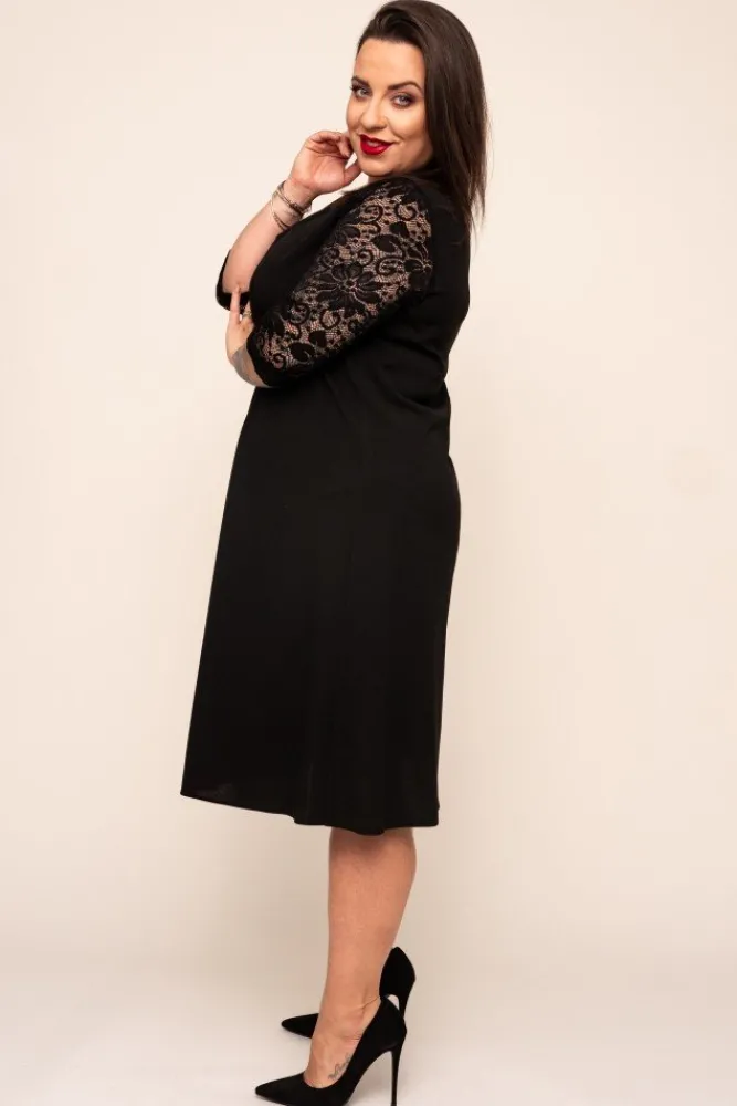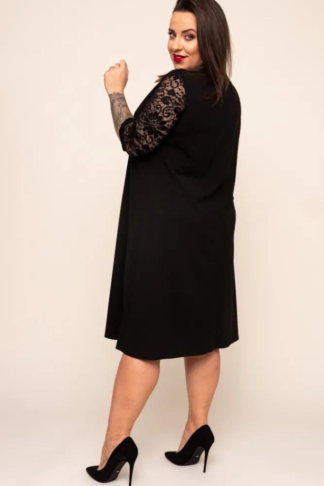 Polski Czarna Sukienka z koronkowym rękawem EVE