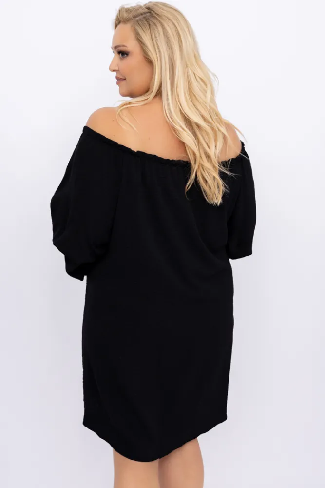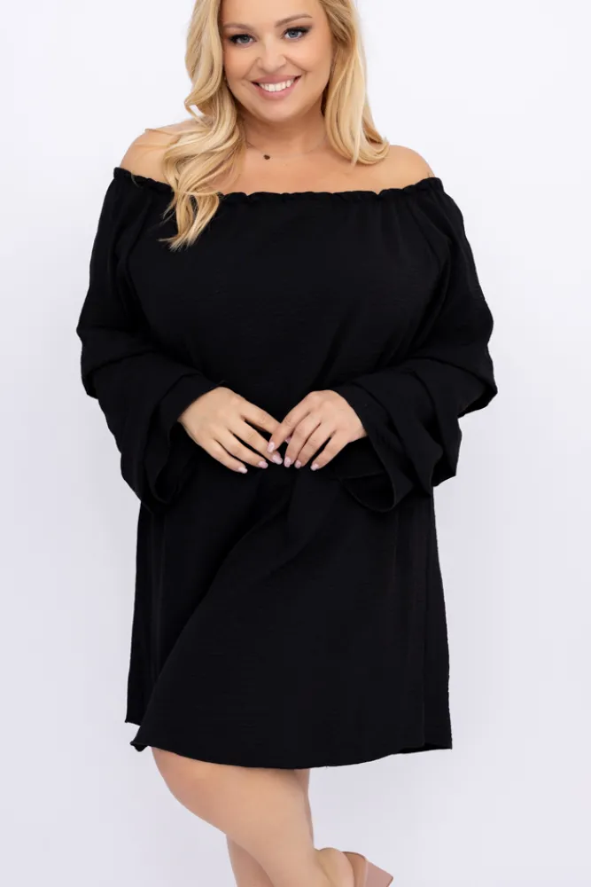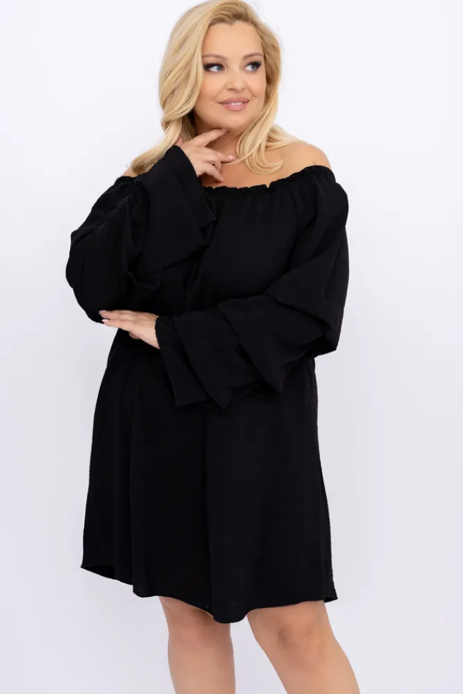 Polski Czarna Sukienka z marszczonymi rękawami LERTIA