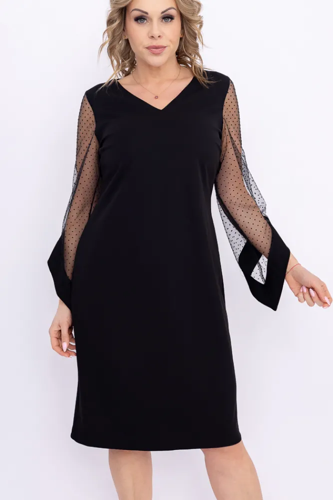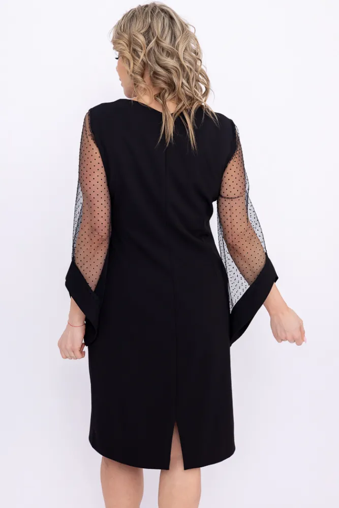 Polski Czarna Sukienka z prześwitującymi rękawami KASTELLA Wzór 1