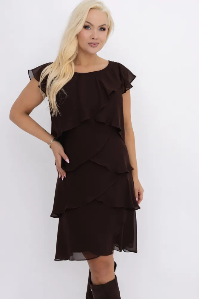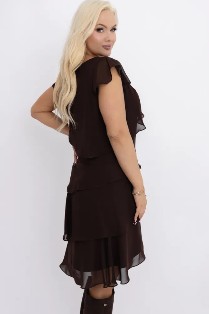 Polski Czekoladowa Sukienka szyfonowa SAROZI