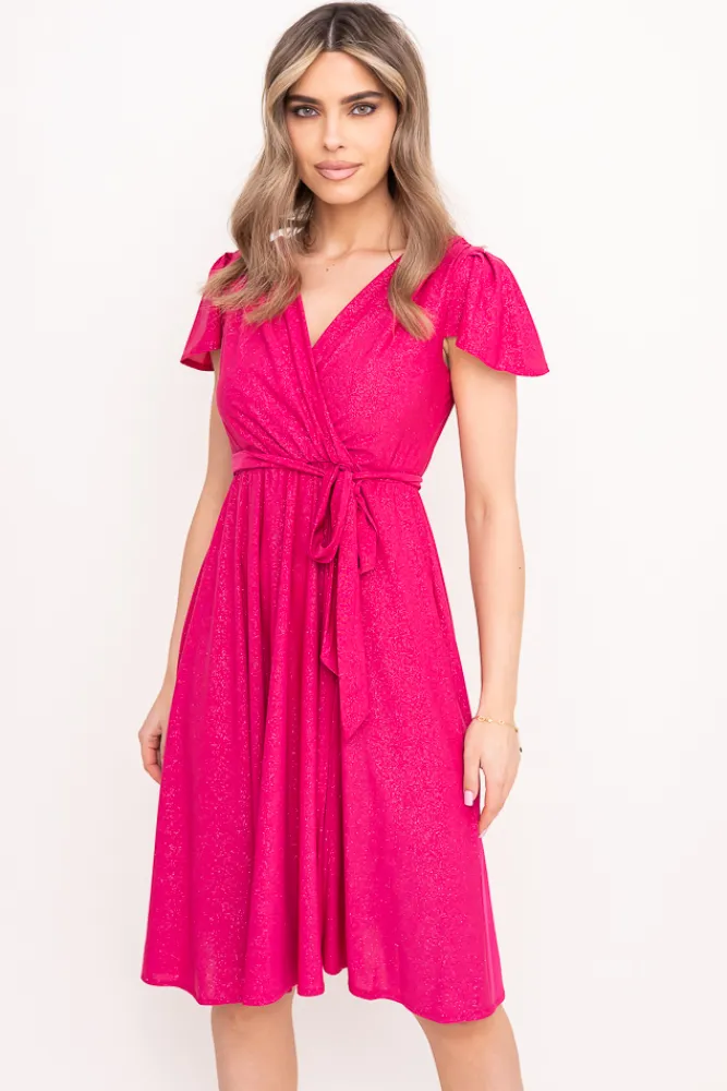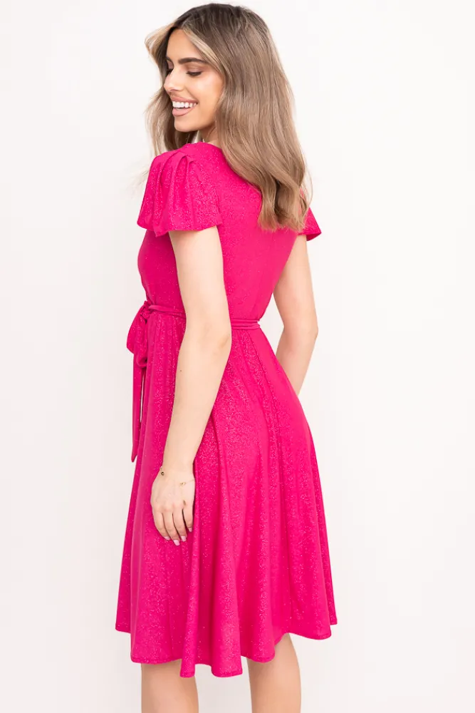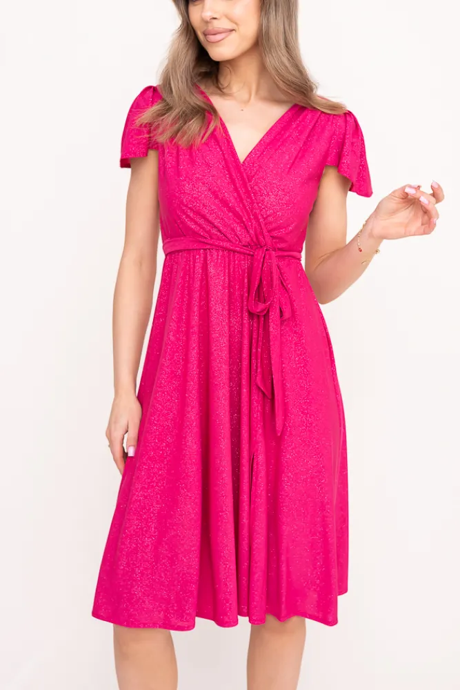Polski Fuksjowa Sukienka brokatowa GENVELI