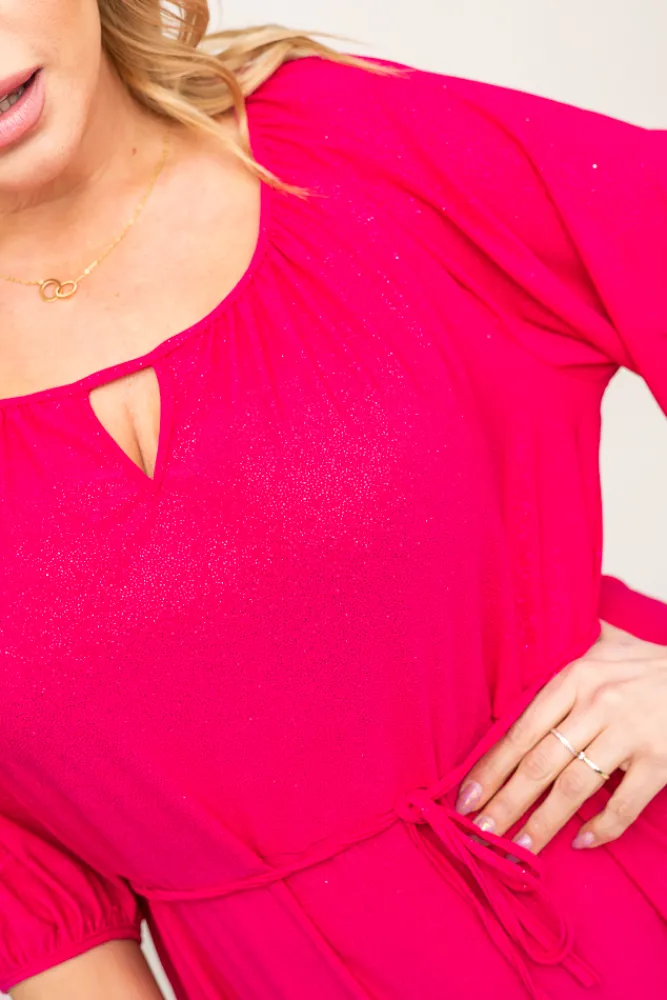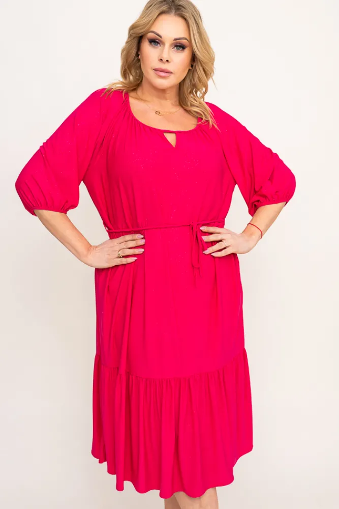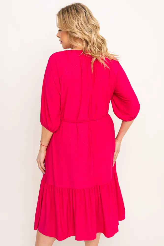 Polski Fuksjowa Sukienka brokatowa z paskiem PENTUZI