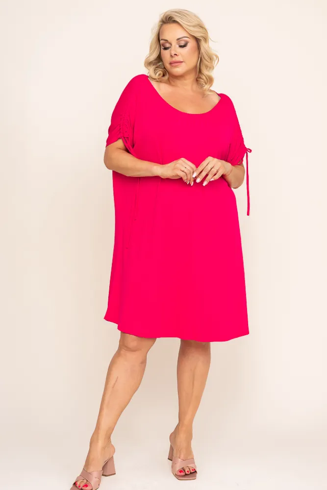 Polski Fuksjowa Sukienka z marszczonymi rękawami PIRESA