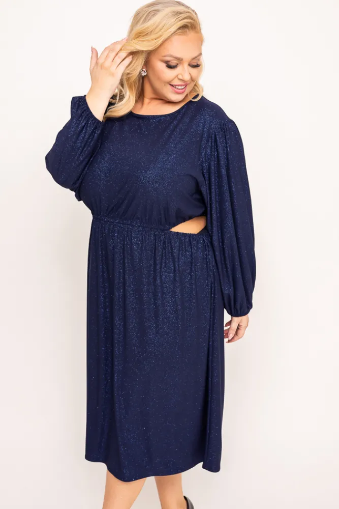 Polski Granatowa Sukienka brokatowa ELEKTI