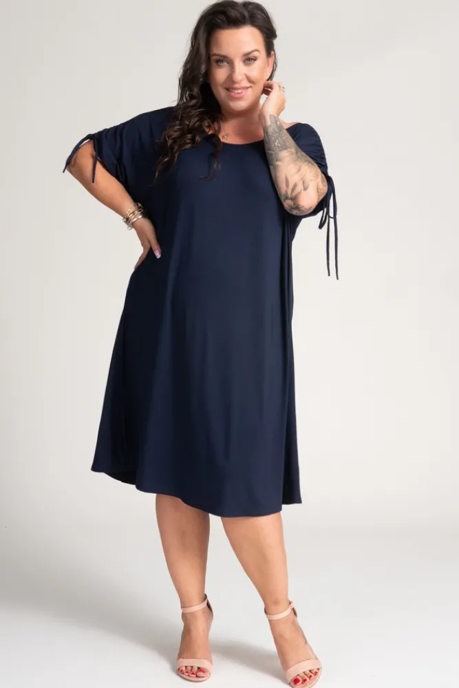 Polski Granatowa Sukienka z marszczonymi rękawami PIRESA