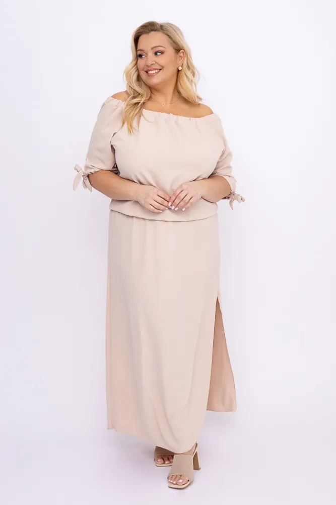 Polski Jasnobeżowa Sukienka NOBI