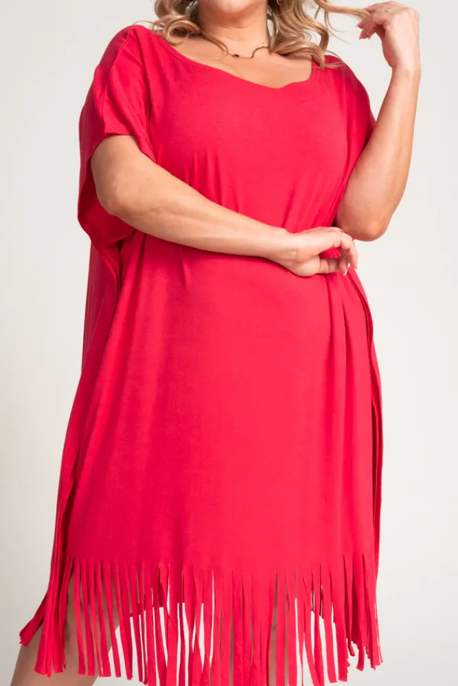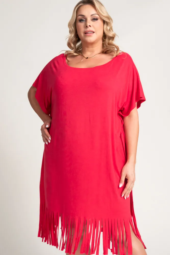 Polski Koralowa Sukienka z frędzlami RIVINO