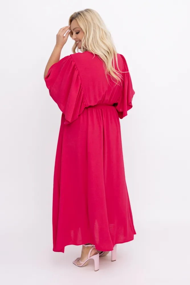 Polski Malinowa Sukienka z marszczeniem VELUZINO