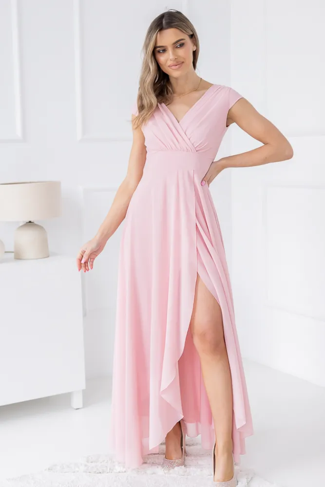 Polski Pudroworóżowa Sukienka szyfonowa CHEVI