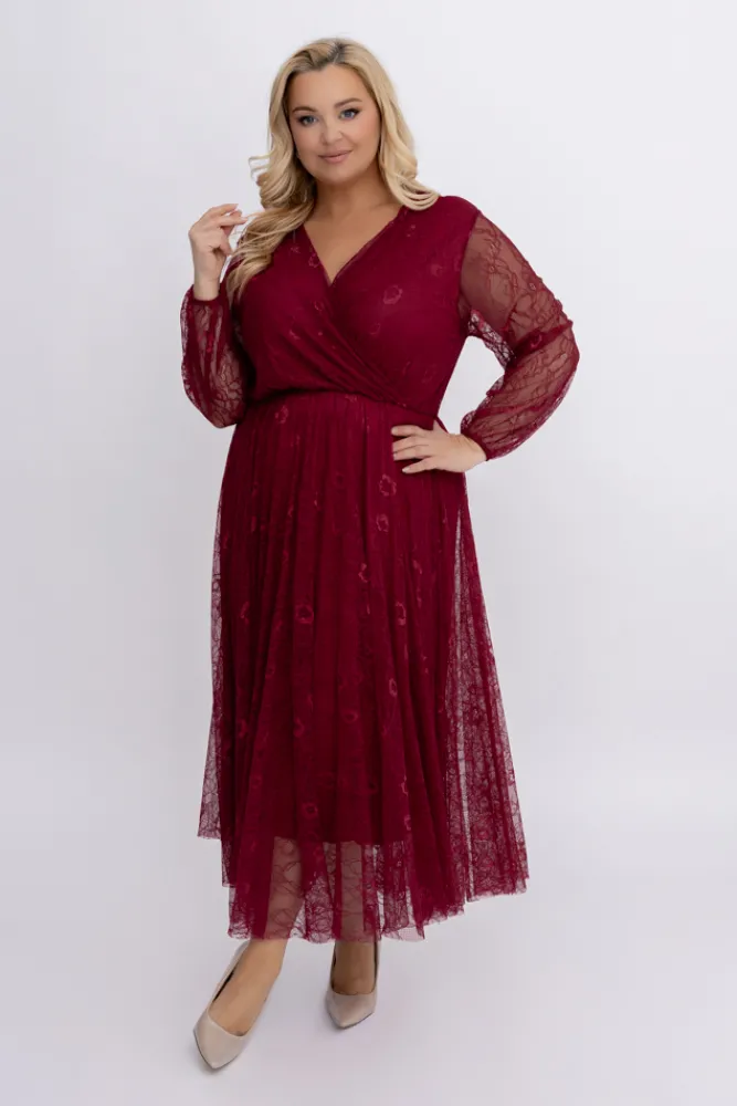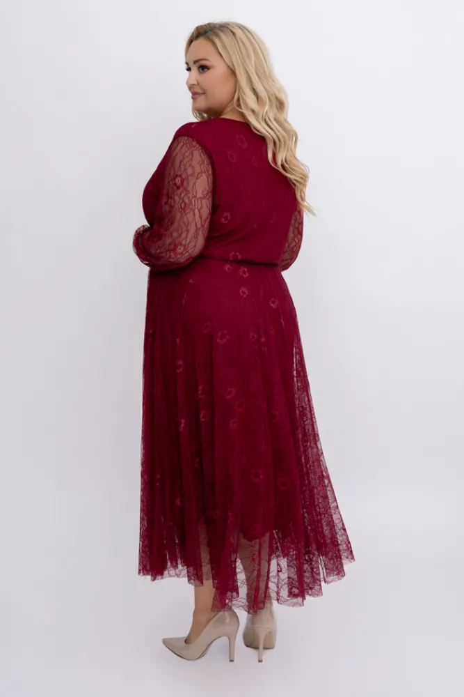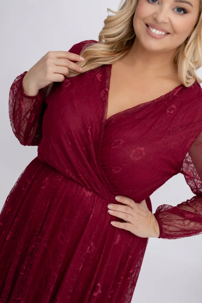 Włoski Bordowa Sukienka koronkowa RITORI