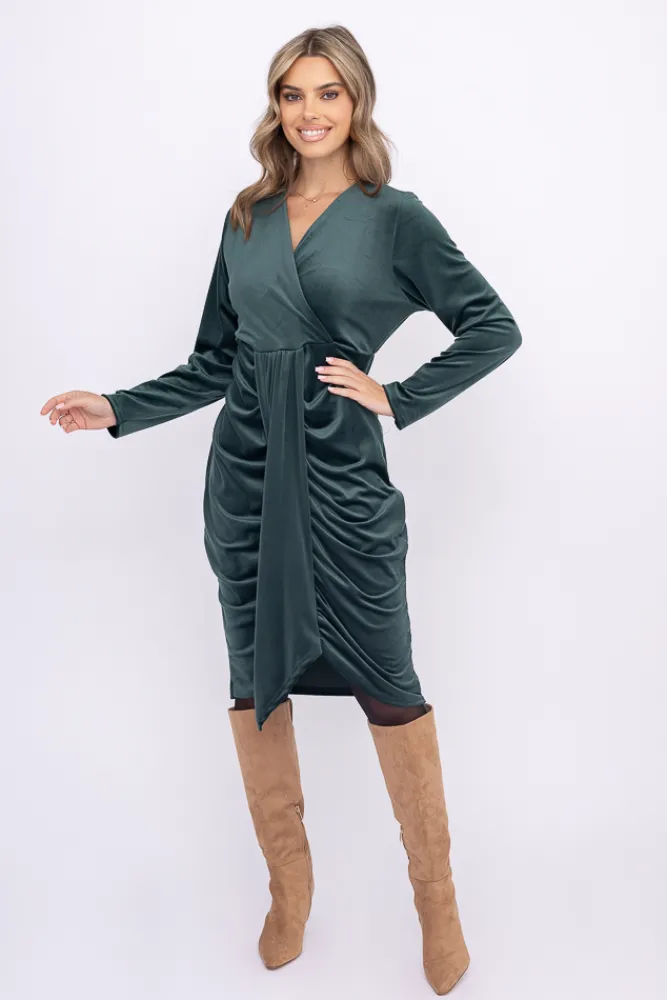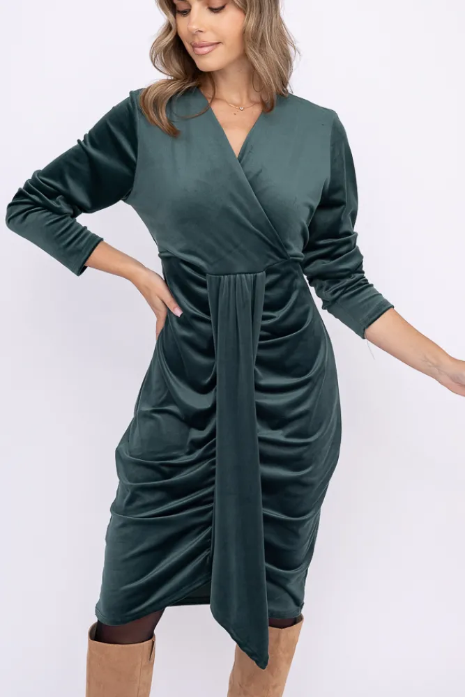 Włoski Butelkowozielona Sukienka welurowa PAFINERI