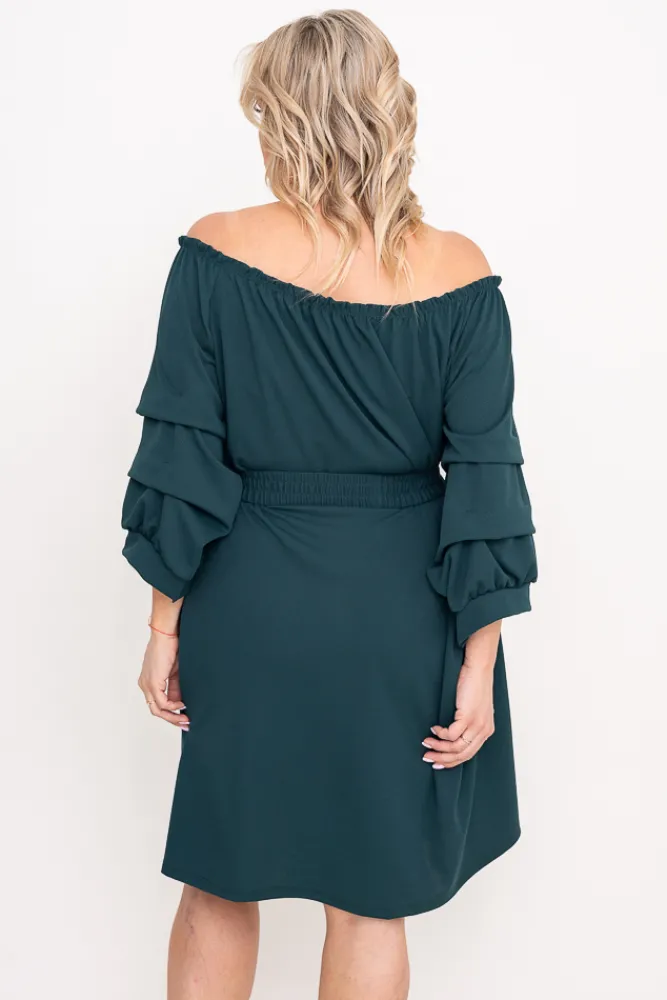 Włoski Butelkowozielona Sukienka z paskiem VOUGI