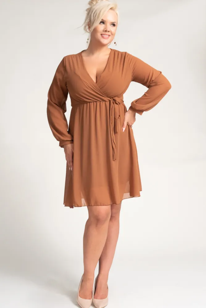 Włoski Camelowa Sukienka Elegancka PERLA