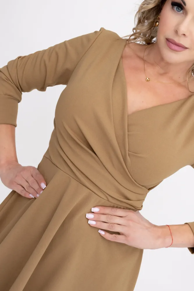 Włoski Camelowa Sukienka KIARA