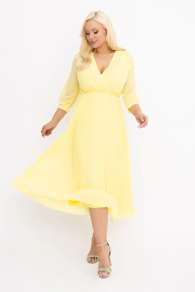 Włoski Cytrynowa Sukienka plisowana KEMELI