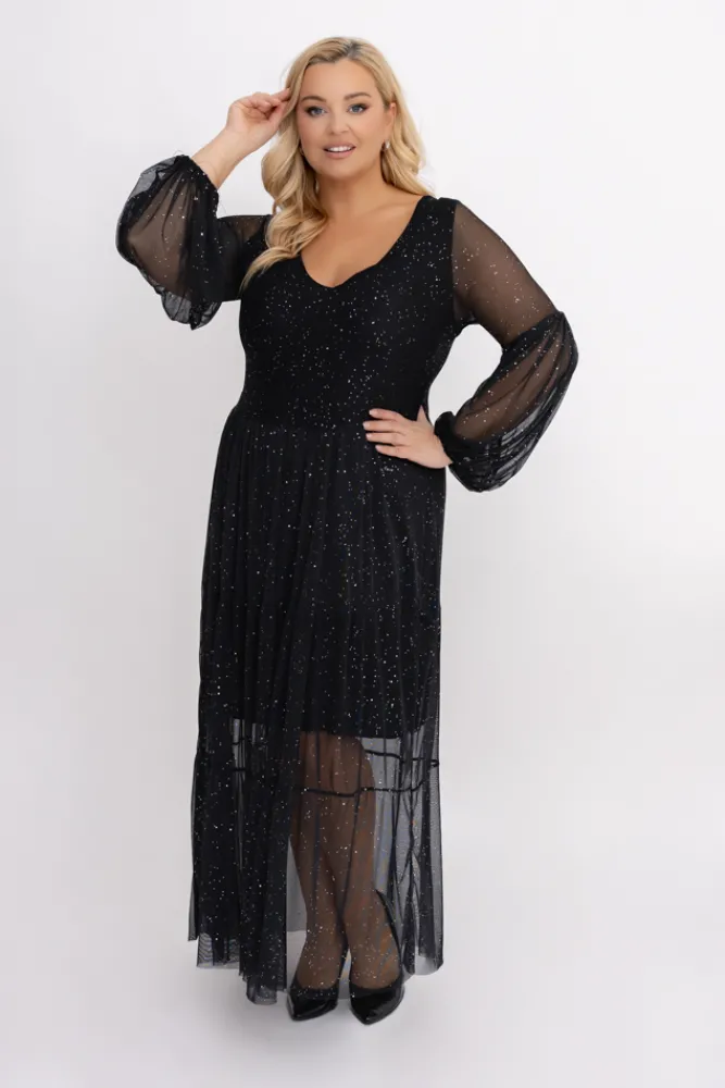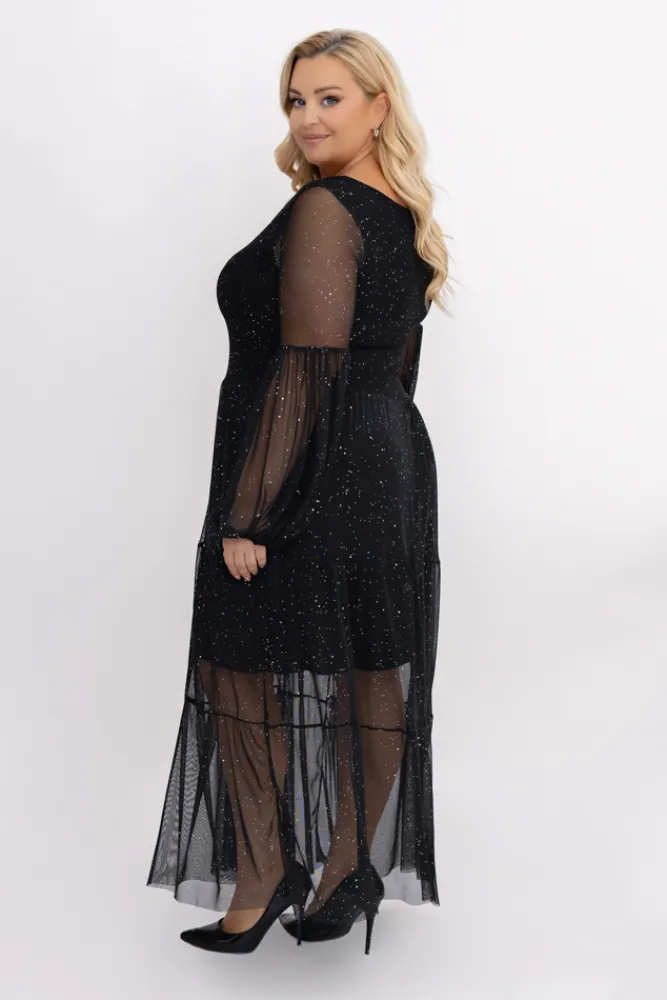 Włoski Czarna błyszcząca Sukienka siateczkowa FLORIGA Wzór 1